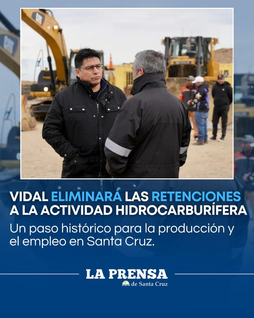 El gobernador Claudio Vidal confirmó que el próximo miércoles viajará a Buenos Aires para firmar con autoridades nacionales la eliminación de las retenciones aplicadas a la actividad hidrocarburífera convencional, un impuesto considerado desde hace años como “uno de los más distorsivos y perjudiciales para la competitividad del sector”.