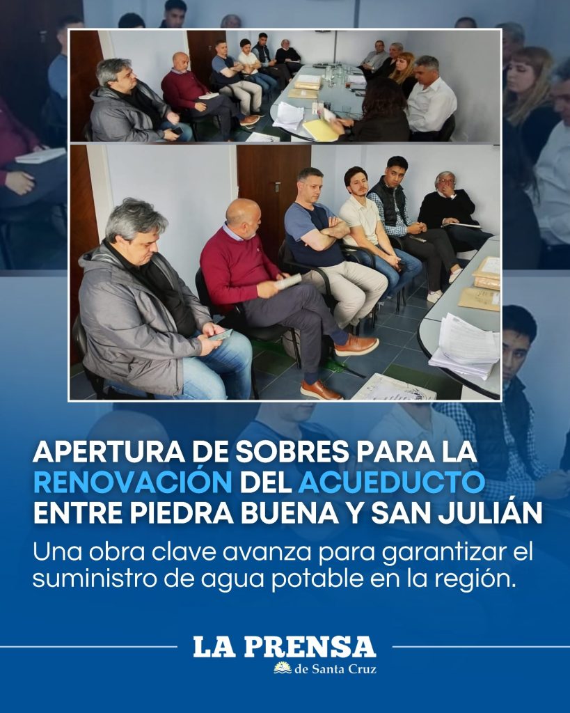 Se realizó la apertura de sobres correspondiente a la Licitación Nº 14/SP/2025, destinada a la “Renovación del acueducto Luis Piedra Buena – Puerto San Julián”, una infraestructura fundamental que abastece a ambas localidades y que requiere una intervención urgente luego de reiteradas fallas que afectaron gravemente el suministro.