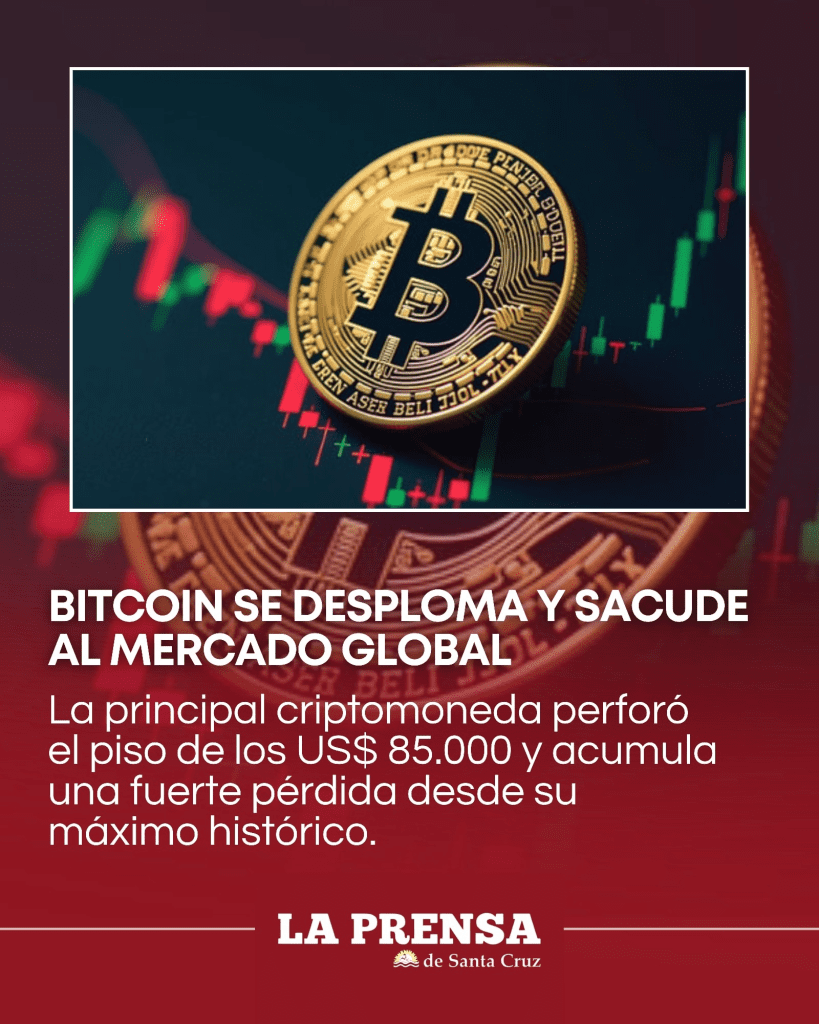 El mercado cripto atraviesa horas de extrema tensión tras una abrupta corrección en la cotización de Bitcoin, que cayó por debajo de los US$ 85.000 y profundizó un retroceso superior al 33 % desde el récord alcanzado semanas atrás. La brusca caída generó un fuerte impacto entre inversores minoristas e institucionales, que observan con preocupación la aceleración del ciclo bajista.