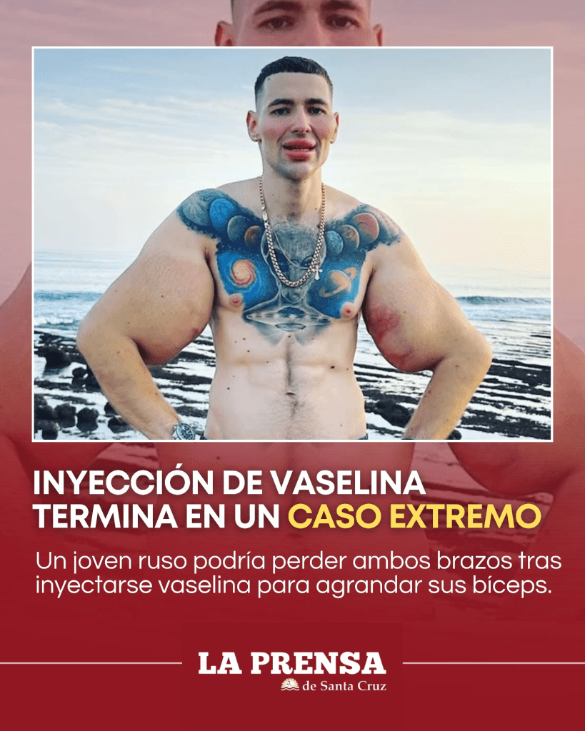 Lo que comenzó como una búsqueda desesperada por obtener un cuerpo más llamativo terminó convirtiéndose en una tragedia sanitaria inesperada. El joven decidió aplicarse vaselina y otras sustancias directamente en los músculos para aumentar su volumen sin entrenamiento real.