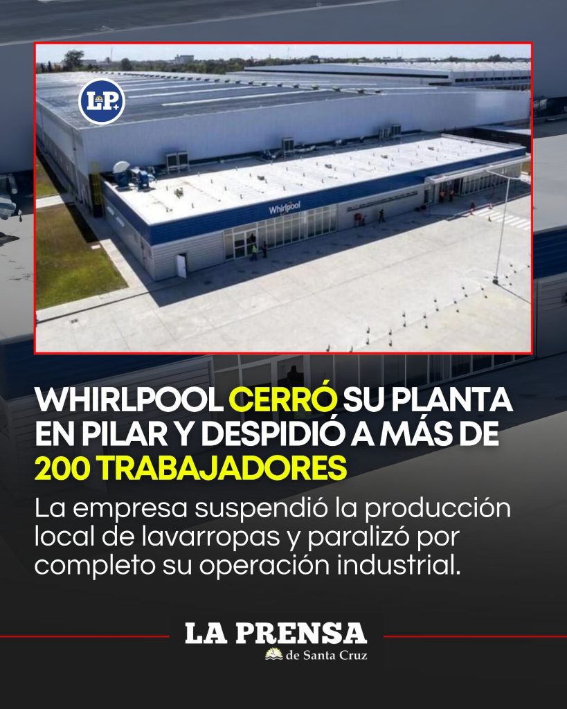 Whirlpool anunció el cierre definitivo de su planta ubicada en el Parque Industrial de Fátima, en Pilar, donde se fabricaban lavarropas de alta tecnología, y comunicó el despido de más de 200 trabajadores que desarrollaban tareas en la línea de producción y áreas técnicas.