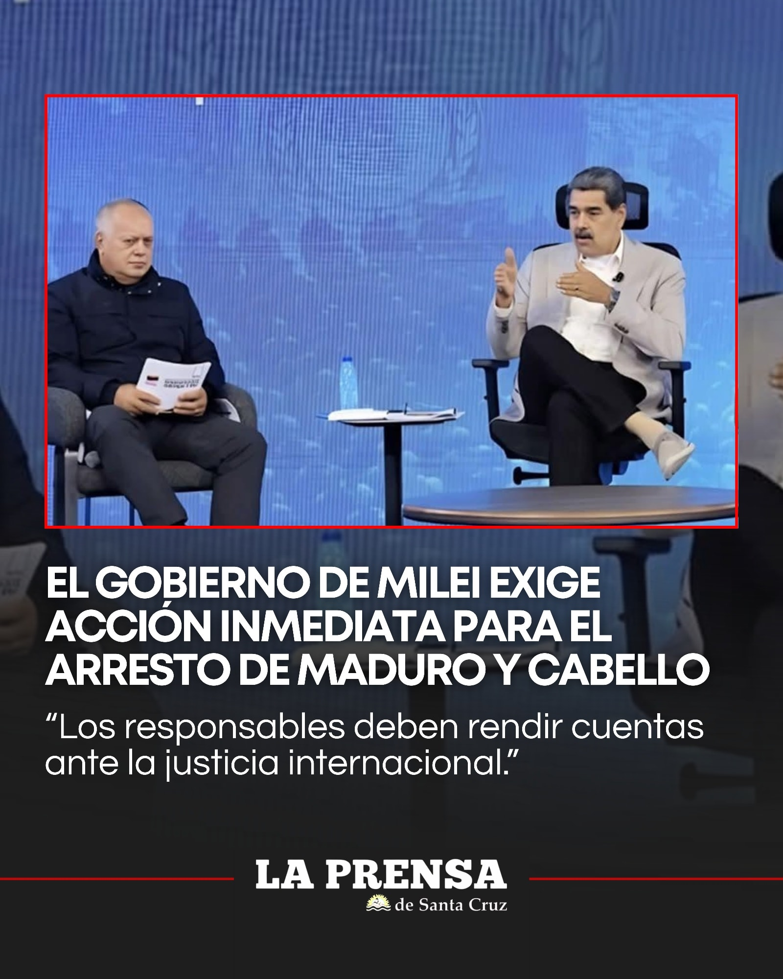EL GOBIERNO DE MILEI EXIGE ACCIÓN INMEDIATA PARA EL ARRESTO DE MADURO Y CABELLO