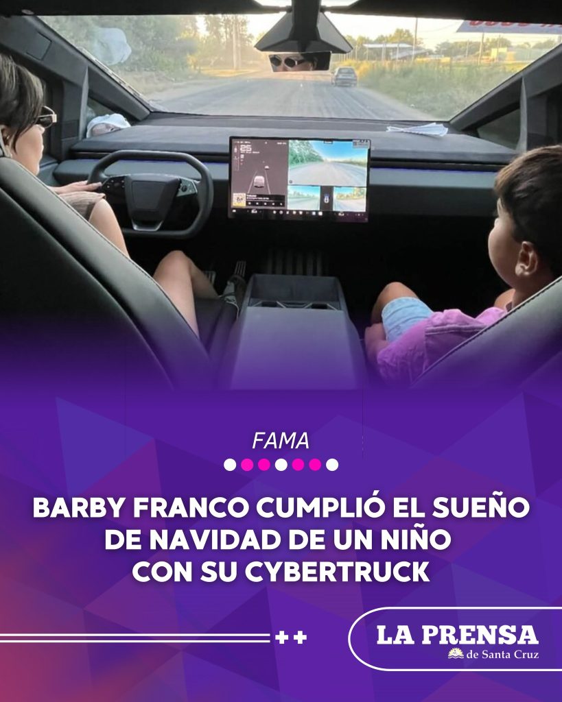 Una historia distinta se vivió en Las Flores cuando el deseo de un niño fanático de los autos llegó a manos de Barby Franco y encontró una respuesta inmediata. Todo comenzó con el mensaje de una madre que, conmovida por la felicidad de su hijo al ver de lejos una Cybertruck, pidió si era posible que pudiera conocerla por dentro. “¿Qué no haría una mamá por ver a su hijo feliz?”, escribió.
