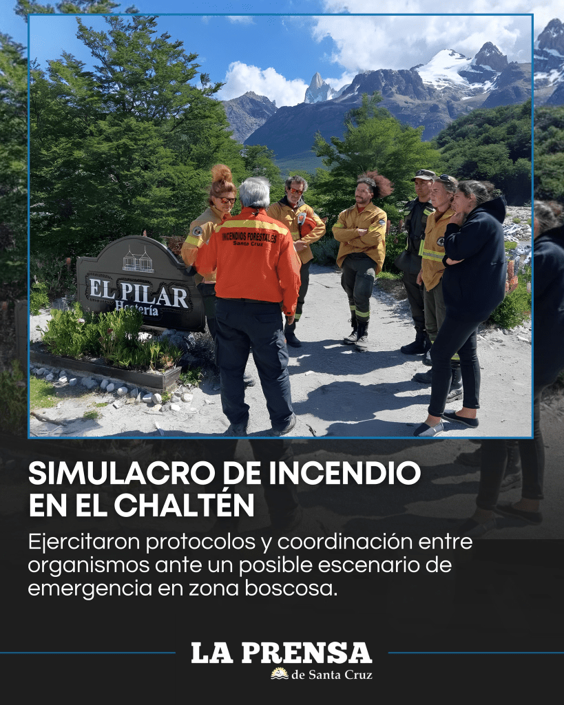 En El Chaltén se llevó adelante un simulacro de incendio de interfase con la participación de organismos provinciales, nacionales y municipales, en una acción destinada a fortalecer la preparación y la respuesta ante emergencias en áreas de alto valor ambiental y turístico. La iniciativa surgió desde la Delegación El Chaltén del Consejo Agrario Provincial y se desarrolló en un complejo turístico ubicado a 15 kilómetros de la localidad, sobre el camino al Lago del Desierto.