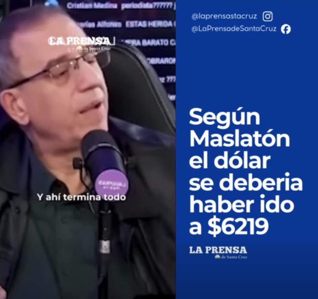 SEGÚN MASLATÓN EL DÓLAR SE DEBERIA HABER IDO A $6219
