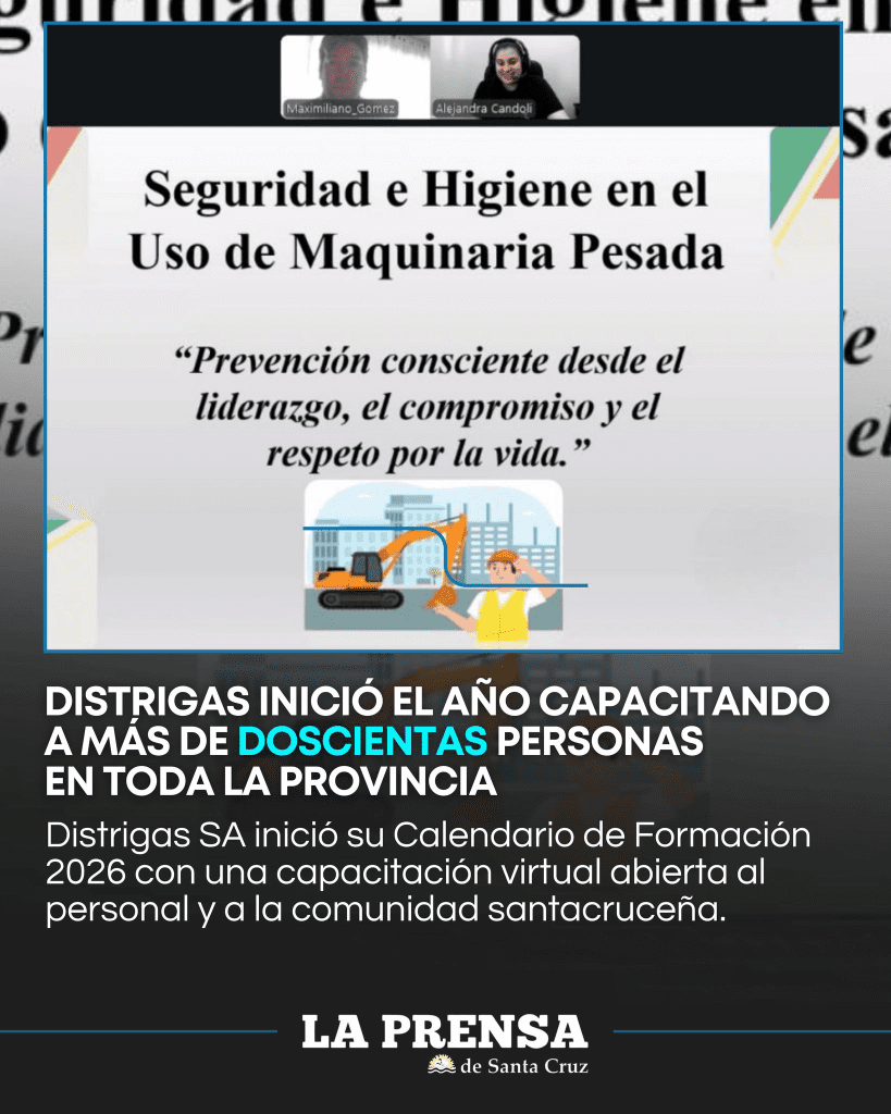 Distrigas SA dio inicio a su Calendario de Formación 2026 con una capacitación virtual abierta a trabajadores de la empresa y a vecinos de distintas localidades de Santa Cruz, consolidando una política de puertas abiertas orientada a la profesionalización, la seguridad laboral y el compromiso social.