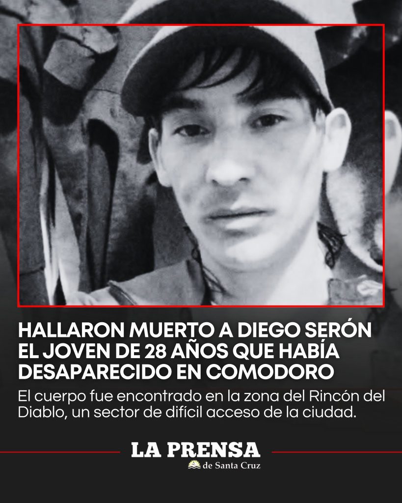 El peor desenlace se confirmó este lunes 19 de enero en Comodoro Rivadavia. Diego Ezequiel Serón, de 28 años, fue hallado sin vida tras permanecer desaparecido desde el 7 de enero, cuando había salido de su casa para realizar un trabajo de colocación de pisos.