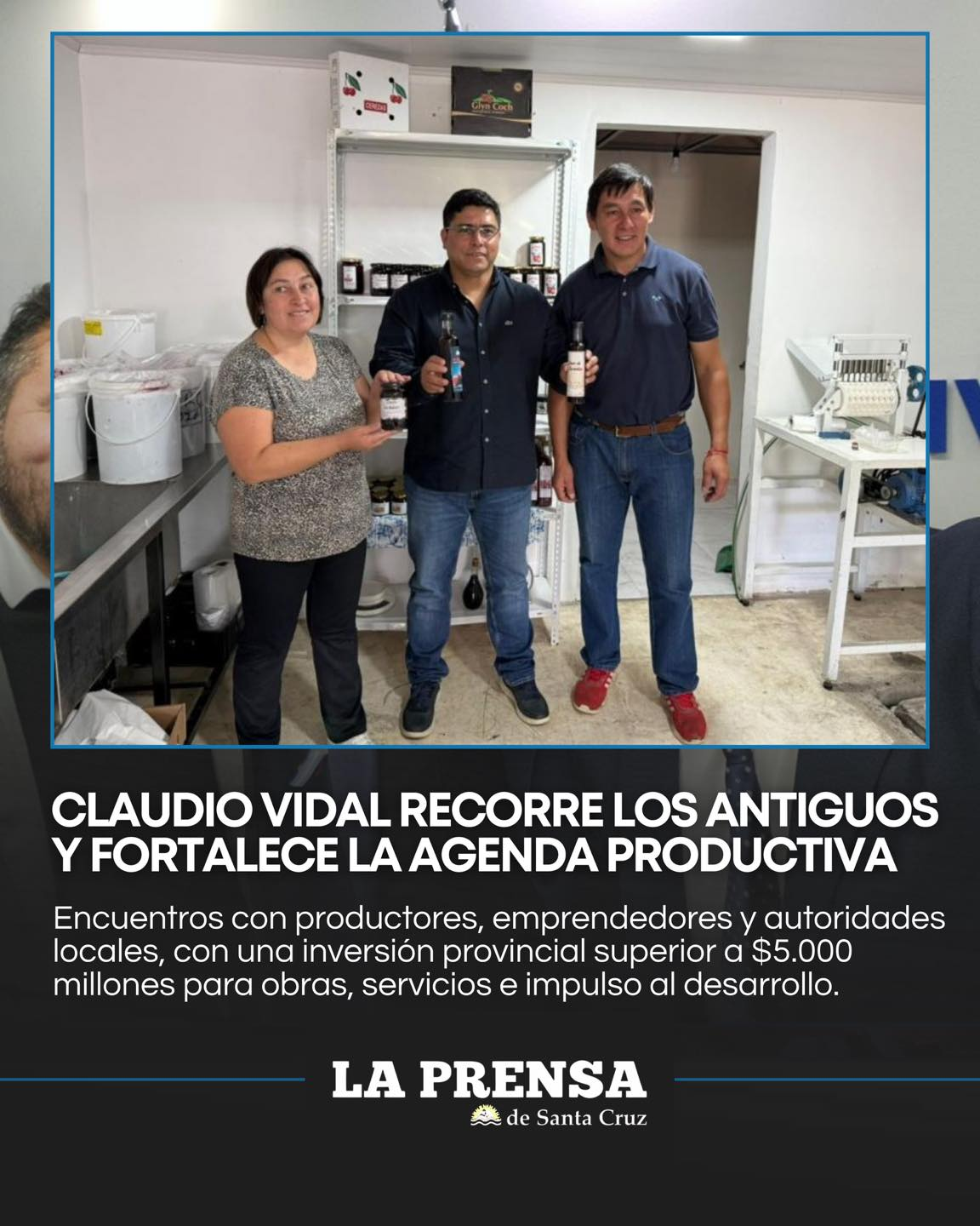 El gobernador Claudio Vidal se encuentra recorriendo la localidad de Los Antiguos con una agenda enfocada en el fortalecimiento de