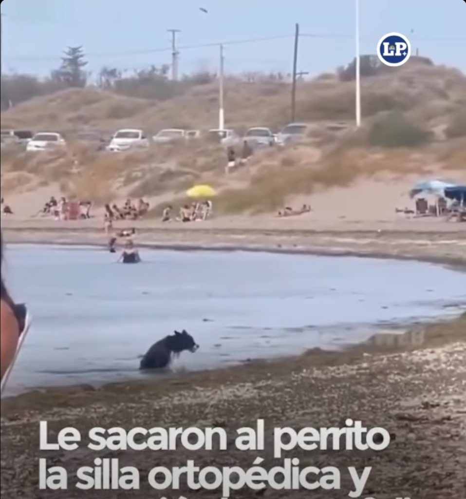 Le sacaron al perrito la silla ortopédica y se metio al mar re feliz