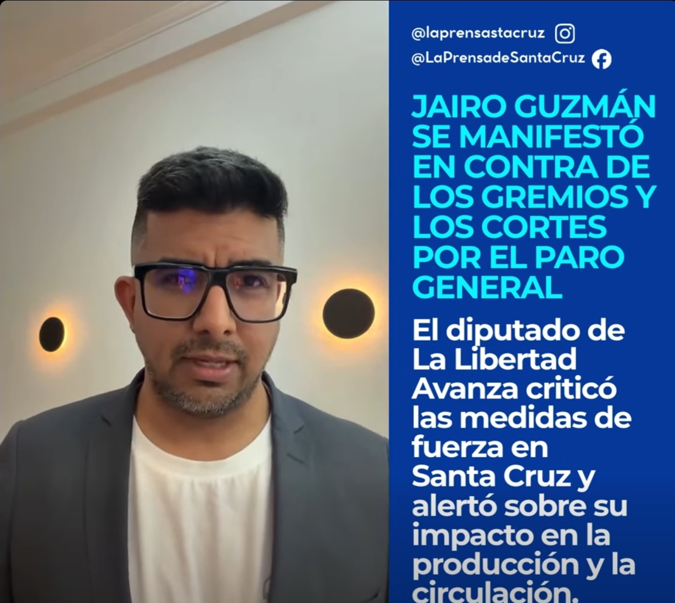 GUZMÁN CRITICÓ LAS MEDIDAS DE FUERZA Y ALERTÓ POR SU IMPACTO EN SANTA CRUZ
