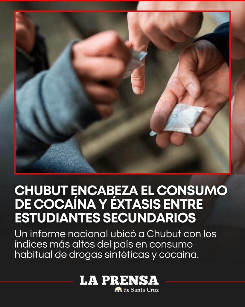 Un estudio del Observatorio Argentino de Drogas reveló que Chubut lidera el ranking nacional en consumo habitual de cocaína y éxtasis entre estudiantes de nivel medio.