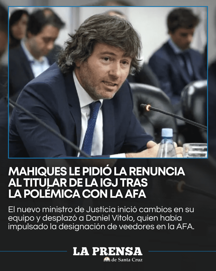 A pocas horas de asumir como ministro de Justicia, Juan Bautista Mahiques pidió la renuncia del titular de la Inspección General de Justicia (IGJ), Daniel Vítolo, quien se había convertido en una de las caras visibles del conflicto entre el Gobierno nacional y la AFA.