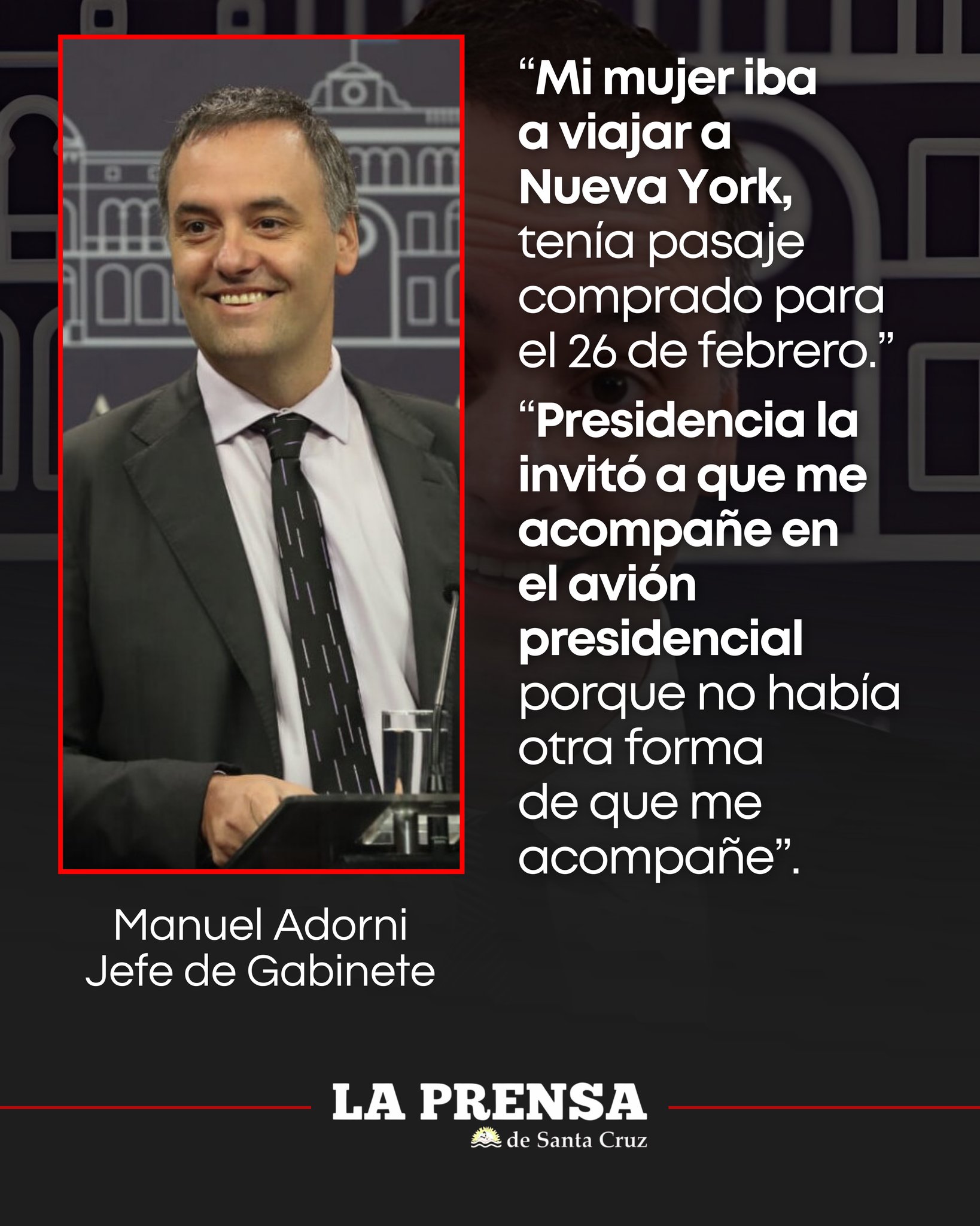 ADORNI JUSTIFICÓ QUE SU ESPOSA LO ACOMPAÑE A NUEVA YORK Y AFIRMÓ QUE “NO HUBO GASTO PÚBLICO”
