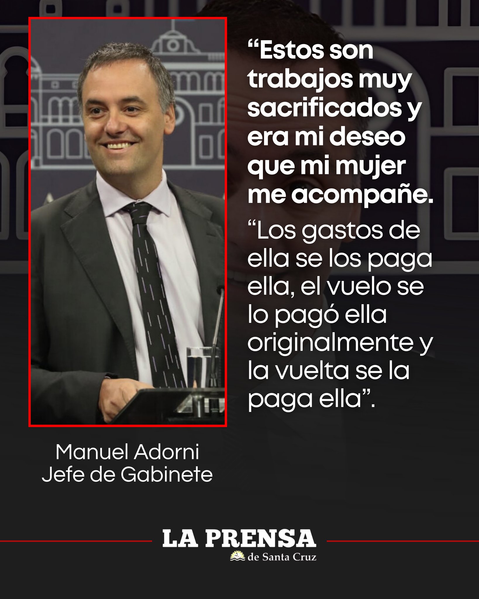 Adorni justificó la decisión señalando que las giras oficiales son “trabajos muy sacrificados” y remarcó que su intención era que su esposa pudiera acompañarlo durante el viaje, insistiendo en que el traslado no representó costos para el Estado.