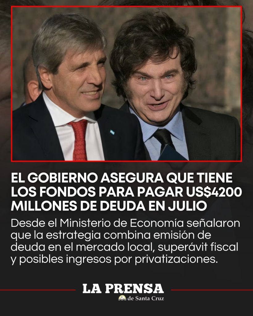El Gobierno nacional afirmó que cuenta con los recursos necesarios para cubrir los vencimientos de bonos por más de US$4200 millones previstos para julio, y buscó llevar tranquilidad a los inversores sobre la capacidad de pago de la Argentina.