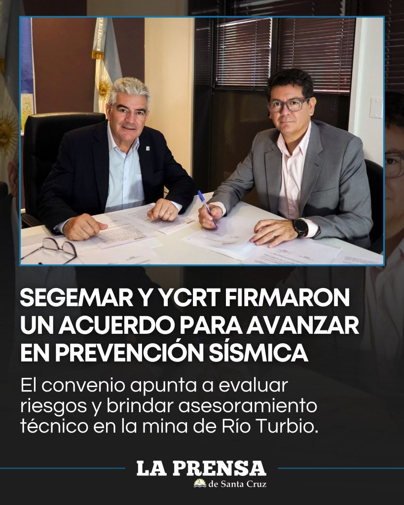 El Servicio Geológico Minero Argentino (SEGEMAR) y Yacimientos Carboníferos Río Turbio (YCRT) formalizaron la firma de un convenio marco y una primera acta complementaria con el objetivo de avanzar en tareas de investigación y asesoramiento técnico en materia de riesgo y prevención sísmica.