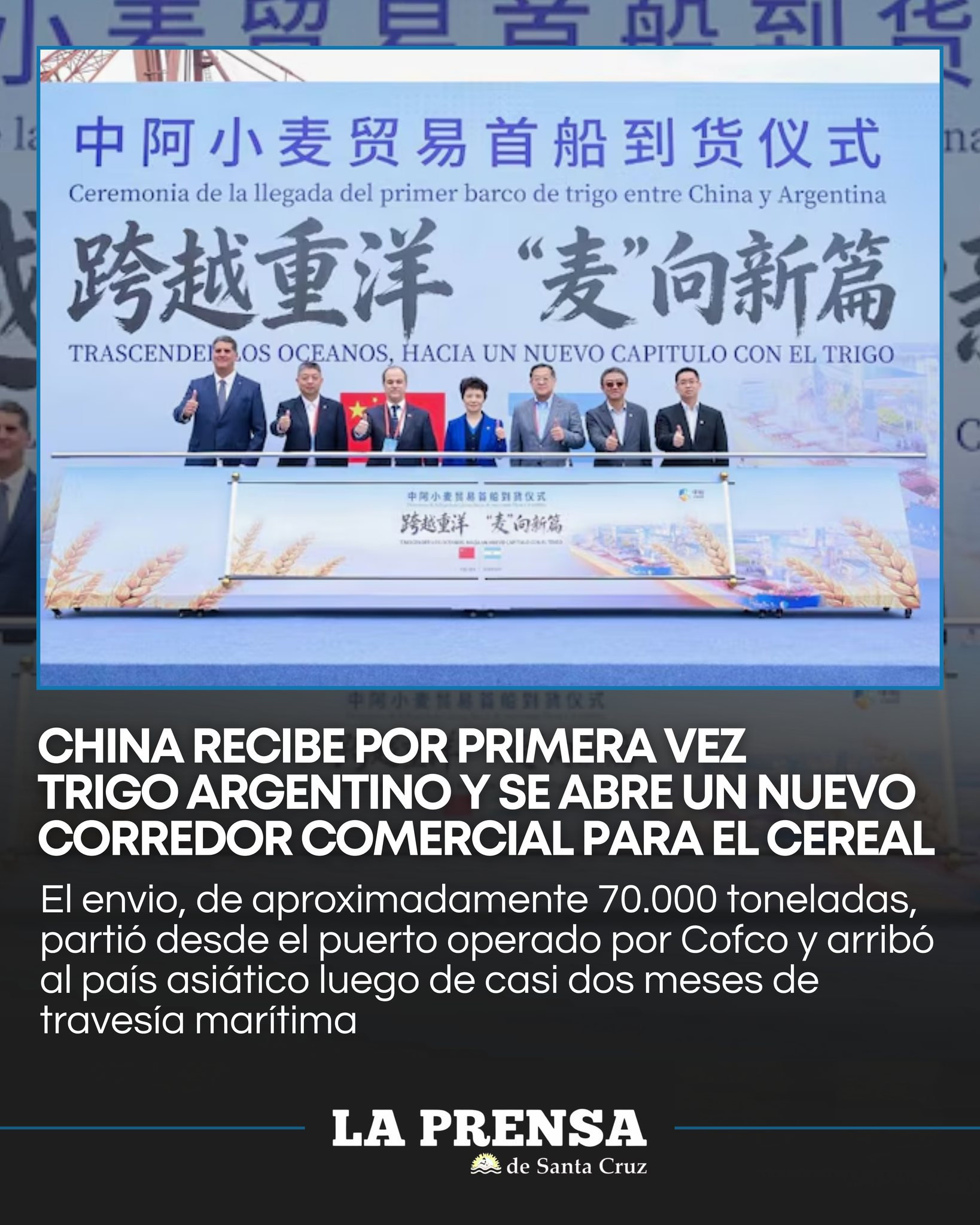 China recibió por primera vez en su historia un embarque de trigo proveniente de Argentina, un hecho que marca la