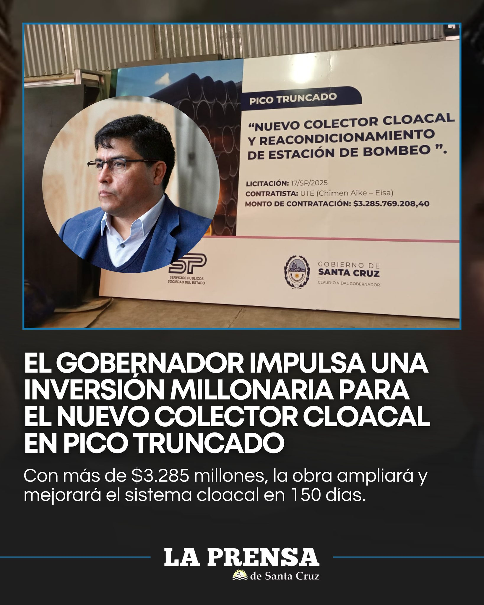 VIDAL IMPULSA UNA INVERSIÓN DE $3.285.769.208 PARA EL NUEVO COLECTOR CLOACAL EN PICO TRUNCADO