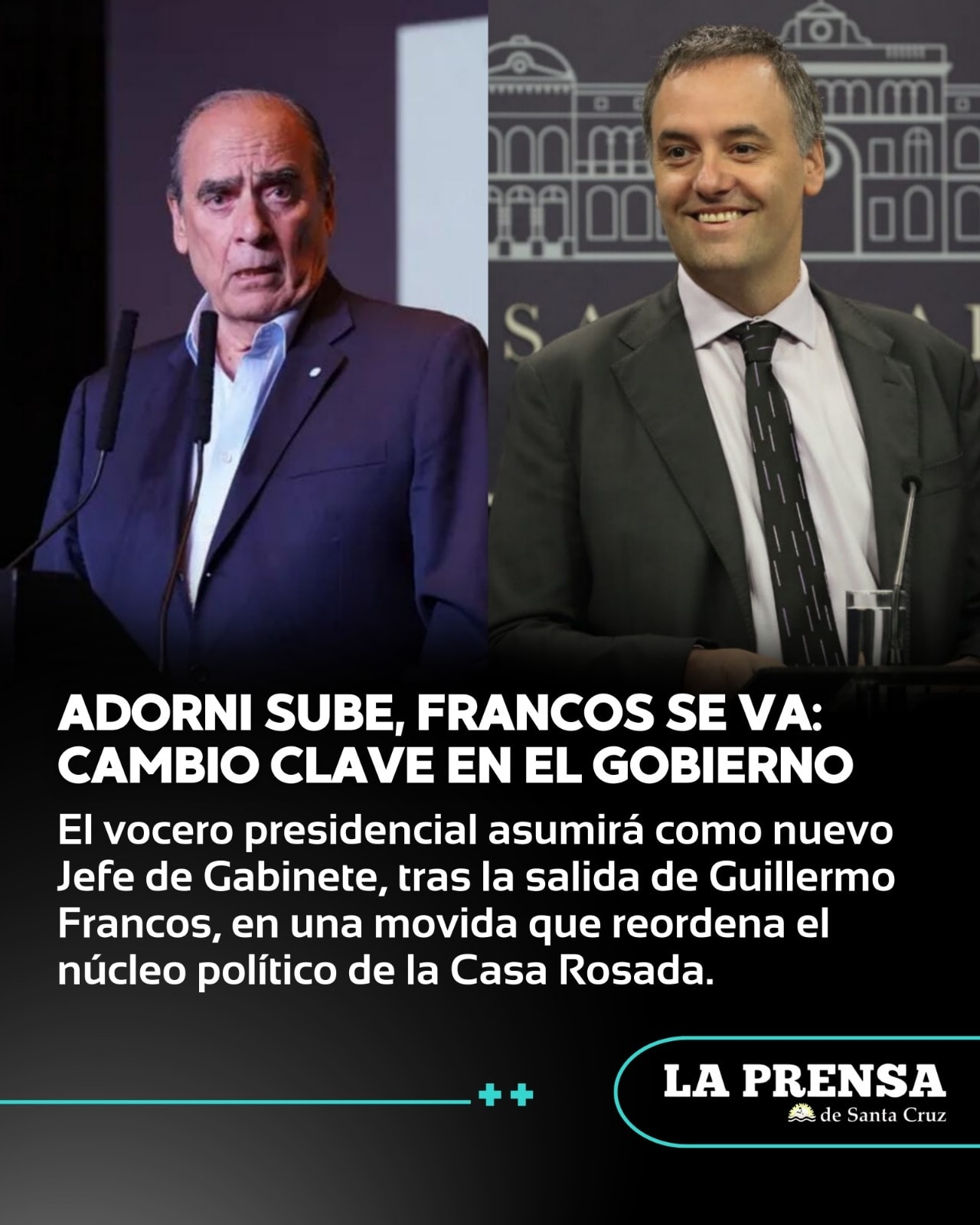 ADORNI SUBE, FRANCOS SE VA: CAMBIO CLAVE EN EL GOBIERNO Read Post »