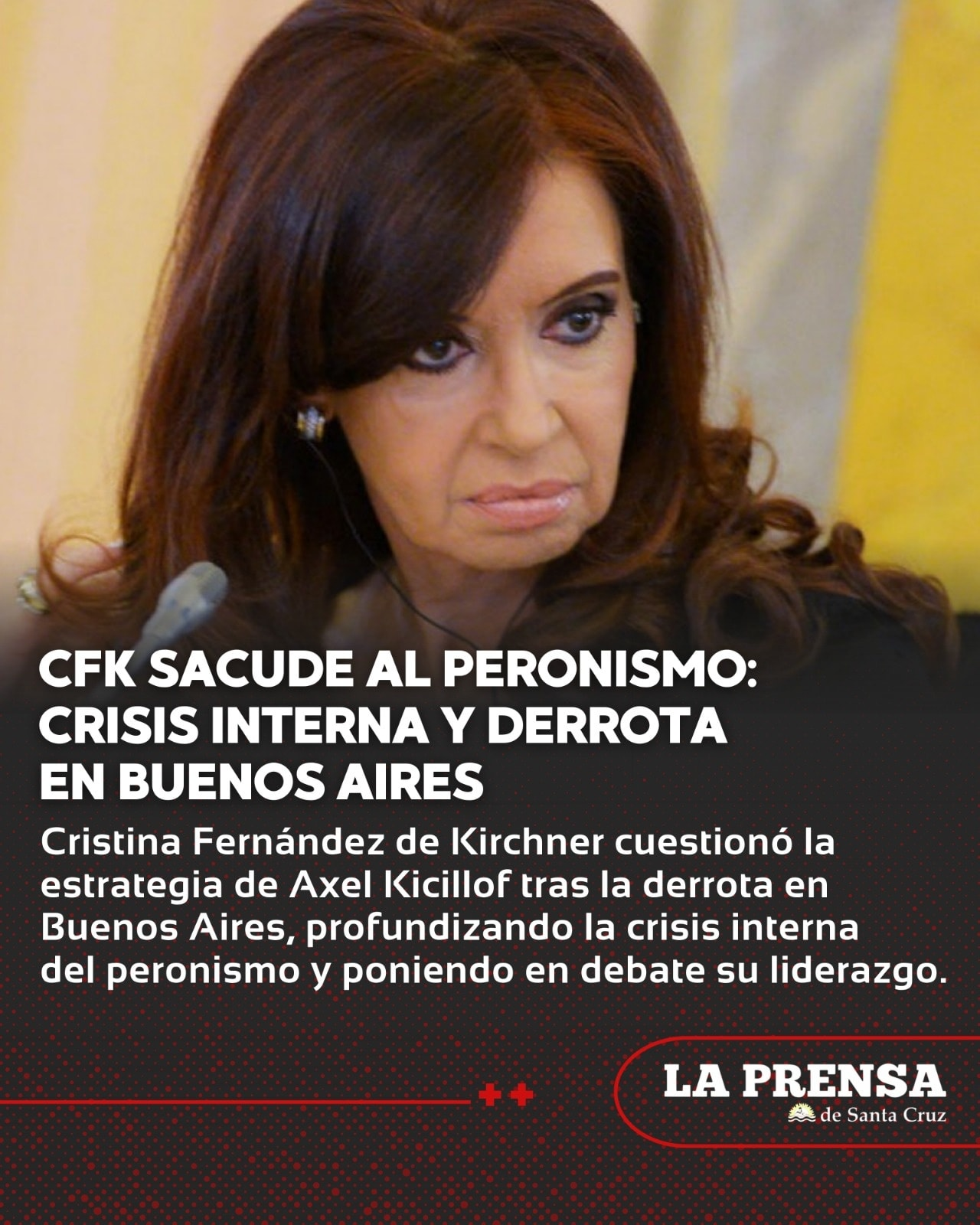 Cristina Fernández de Kirchner cuestionó la estrategia de Axel Kicillof tras la derrota en Buenos Aires, profundizando la crisis interna
