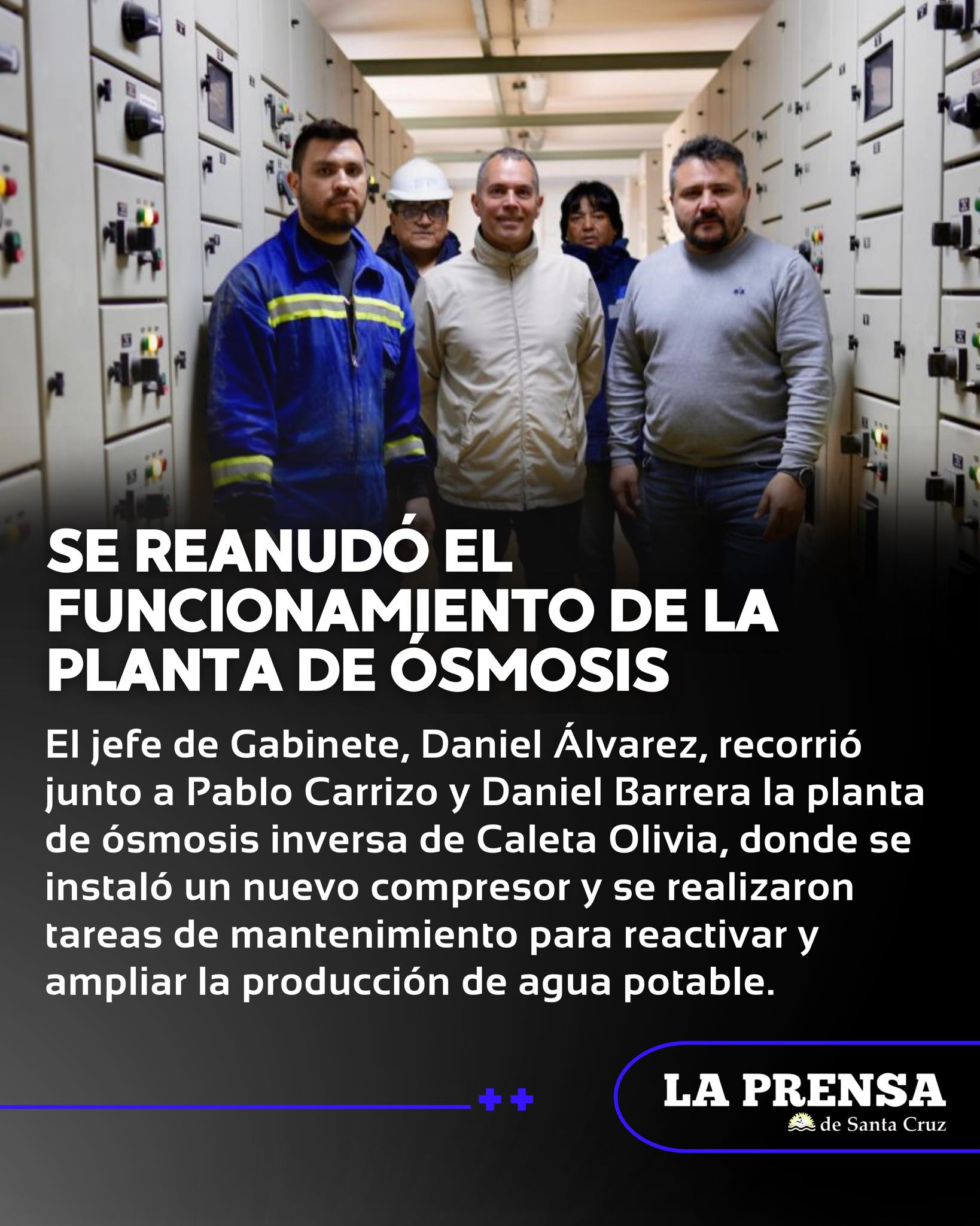 La instalación de un nuevo compresor y trabajos de mantenimiento en la planta de ósmosis inversa de Caleta Olivia permitieron