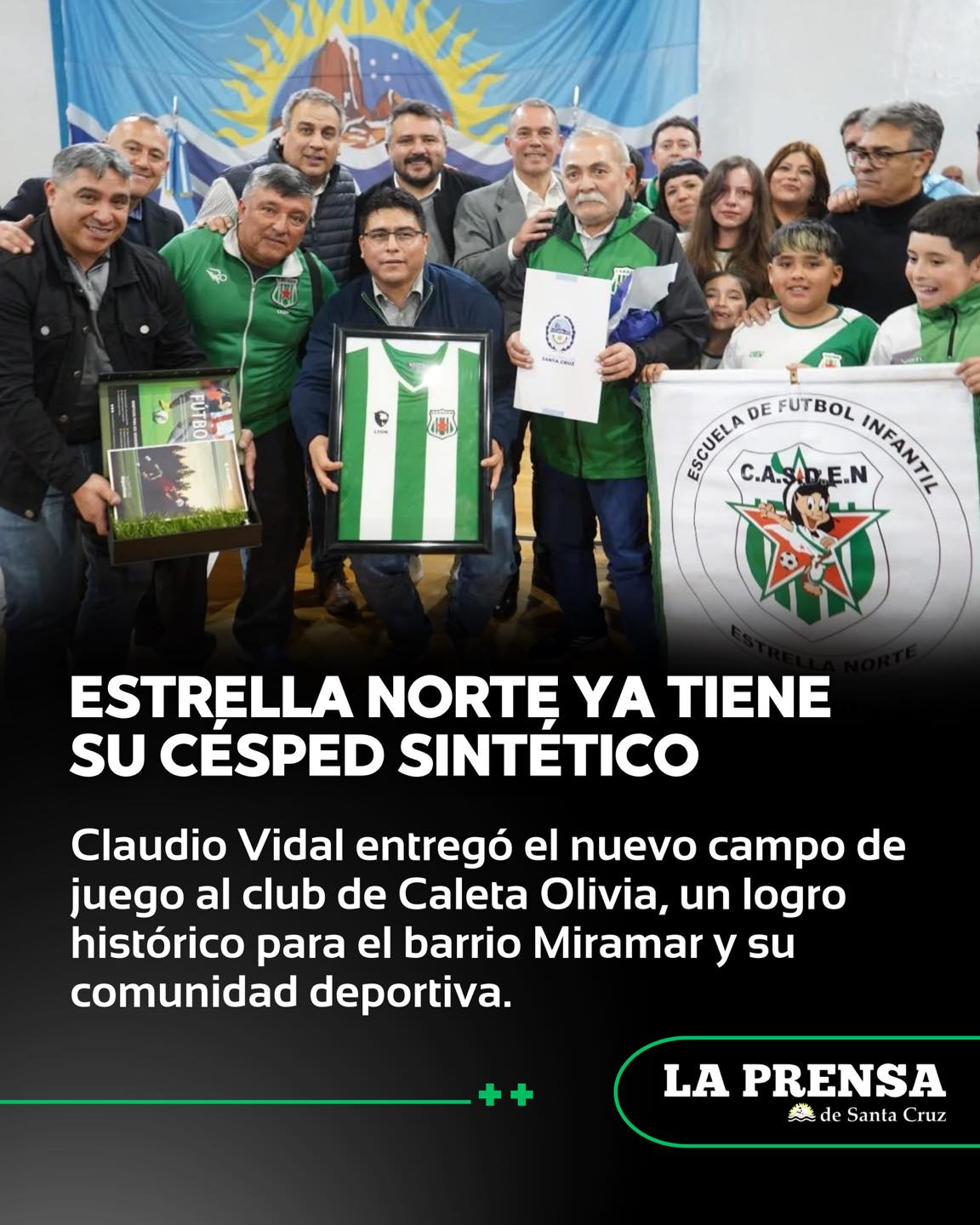 El gobernador Claudio Vidal entregó el nuevo campo de juego al club de Caleta Olivia, marcando un hito histórico para