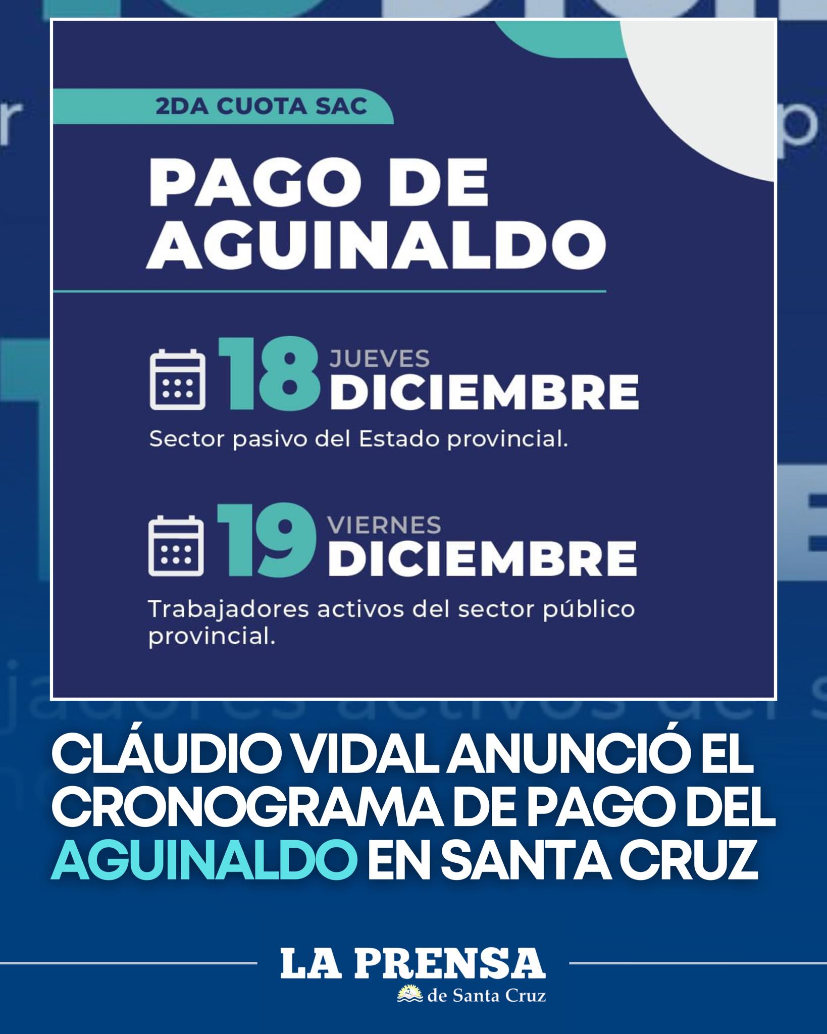 El gobernador Claudio Vidal informó las fechas de pago de la segunda cuota del Sueldo Anual Complementario (SAC): • Jueves